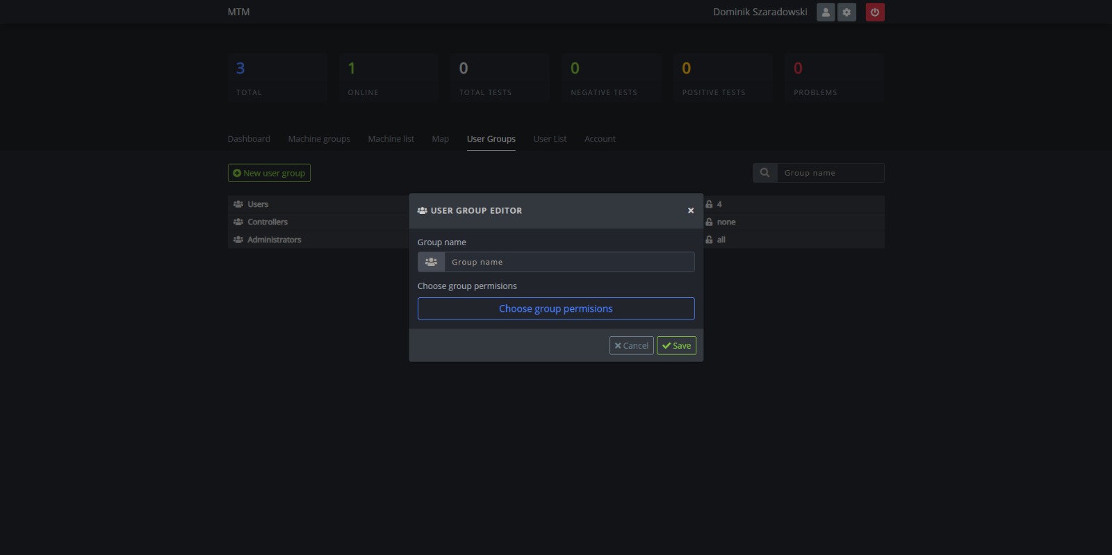 Dodatkowe funkcjonalności aplikacji obejmują możliwość zarządzania grupami maszyn i użytkowników. Administratorzy mogą definiować grupy użytkowników i maszyn, przypisywać różne poziomy uprawnień oraz śledzić lokalizację maszyn za pomocą zintegrowanej mapy. Rozbudowany system analizy danych i powiadomień pozwala na szybkie informowanie administratorów o wszelkich problemach technicznych.