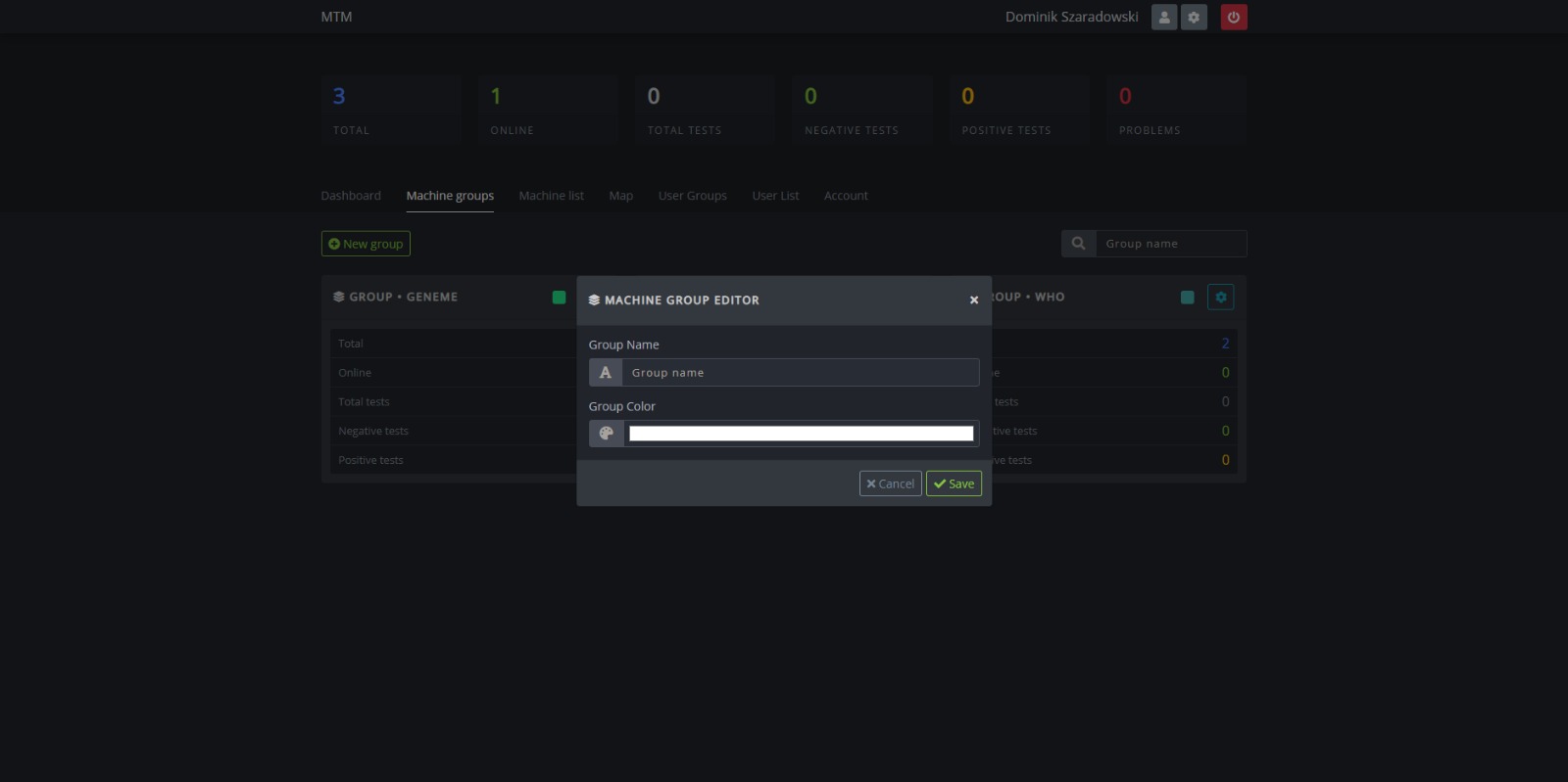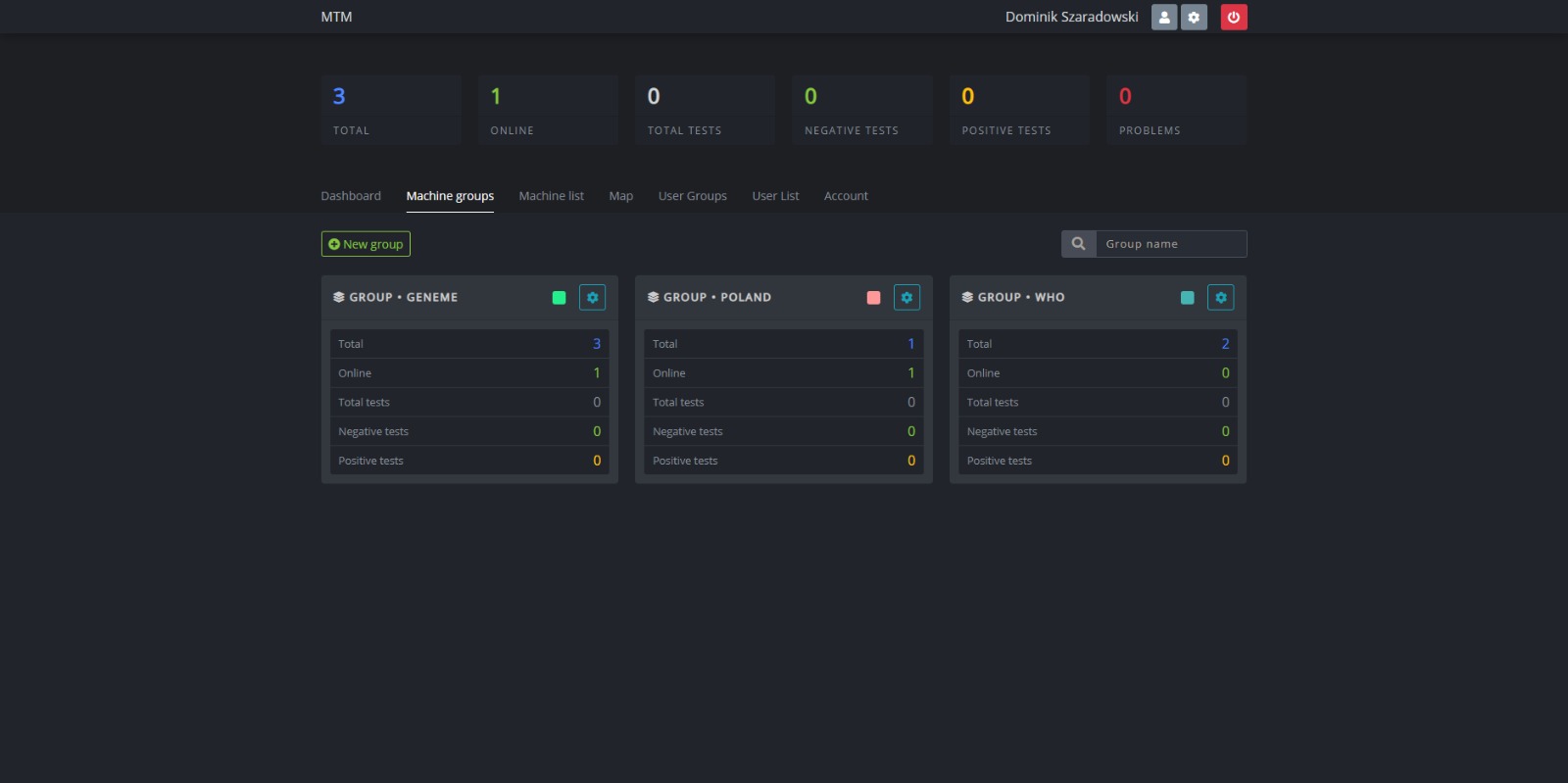 Aplikacja do zarządzania testami COVID-19: monitorowanie maszyn, analiza wyników, zarządzanie użytkownikami.