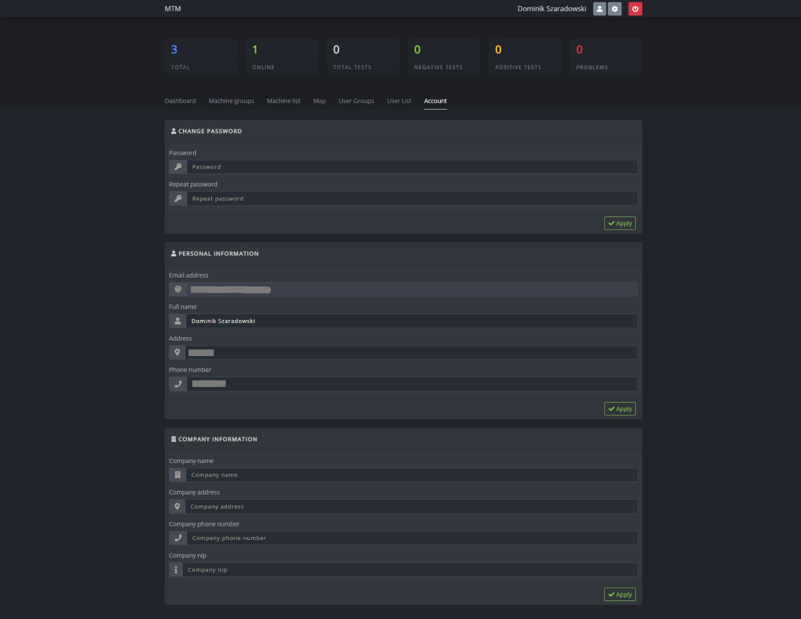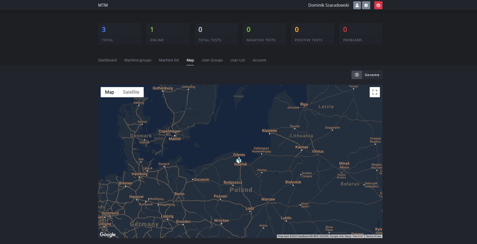 Interfejs aplikacji został zaprojektowany w sposób intuicyjny i przejrzysty, co sprawia, że użytkowanie tej platformy jest łatwe nawet dla osób z ograniczonym doświadczeniem technicznym. Moduł dashboardu umożliwia bieżące monitorowanie liczby aktywnych maszyn i analizę danych dotyczących przeprowadzonych testów. Użytkownicy mogą także sprawdzać historię testów oraz szczegółowe statystyki.