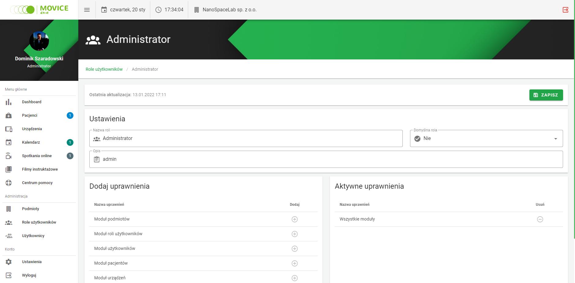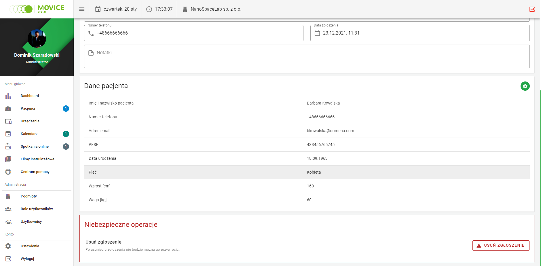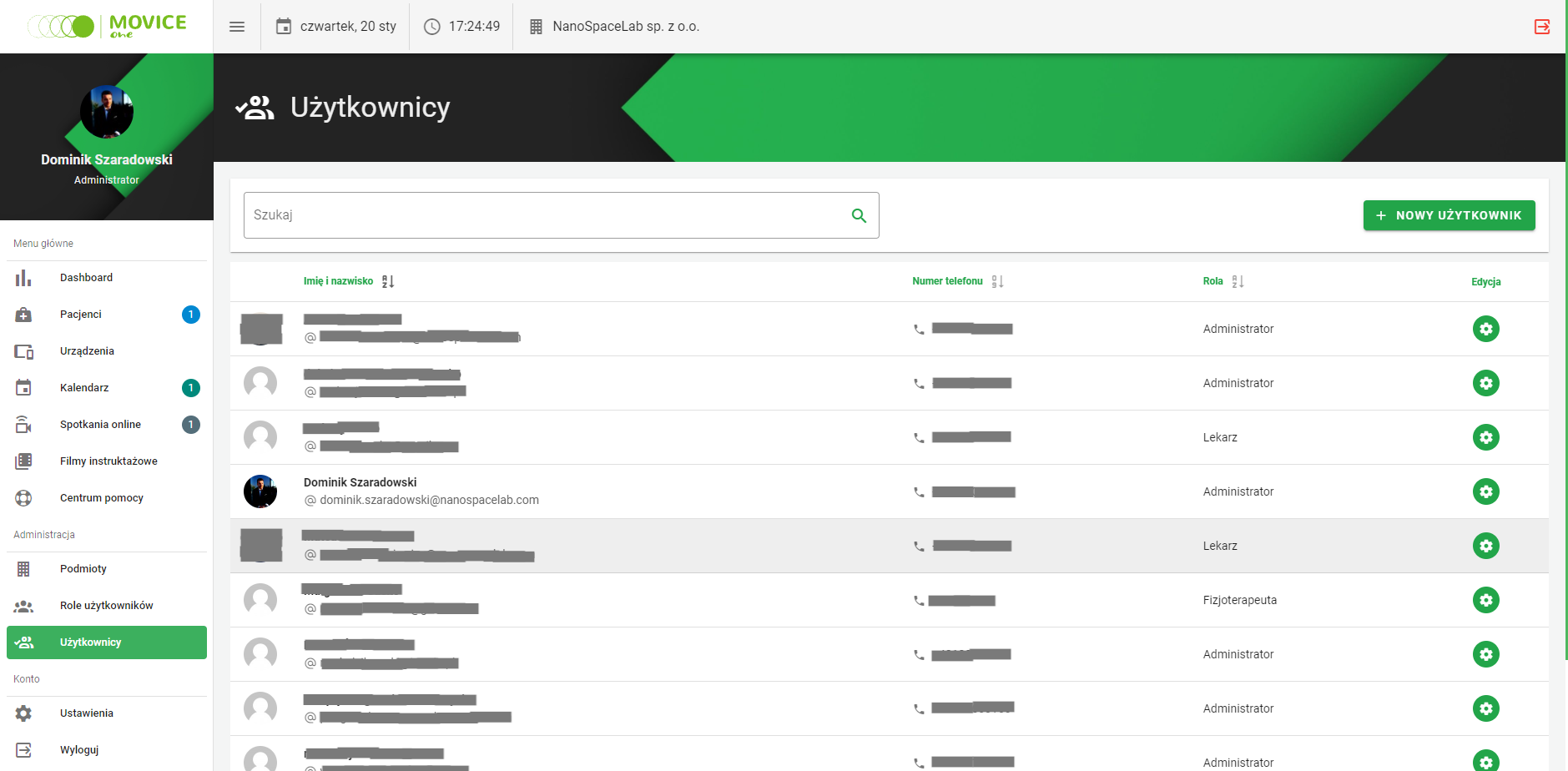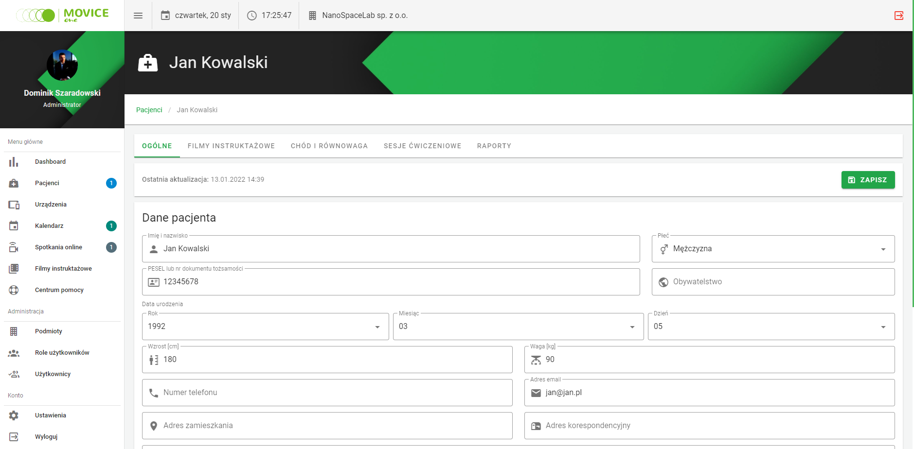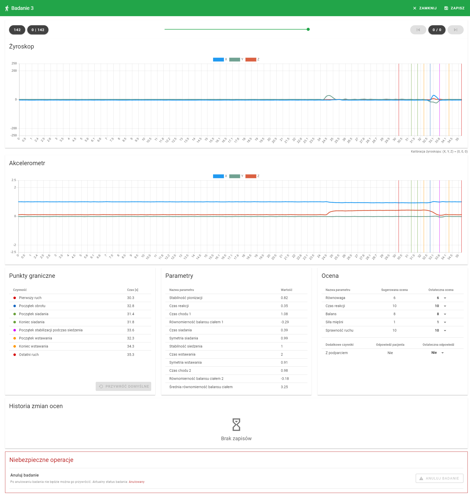 Online rehabilitation monitoring with motion analysis and advanced algorithms. The platform offers parametric presentation of results and patient progress.